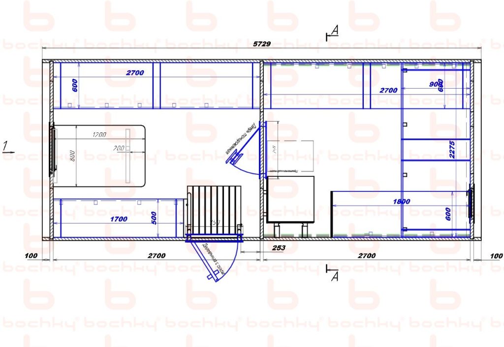 | Длина раздевалки (внутренний размер) | 2700 мм |